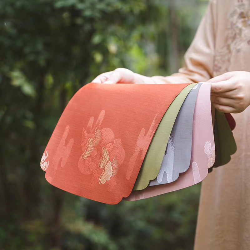 归云居 知舍原创简约多色菱花纹茶席 国风经典传统色系纯色桌旗