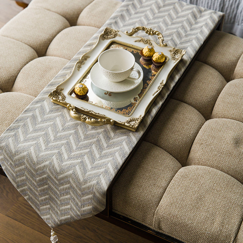 提亮深色家具美式桌旗高档奢华餐桌玄关斗柜电视柜50cm盖布新中式