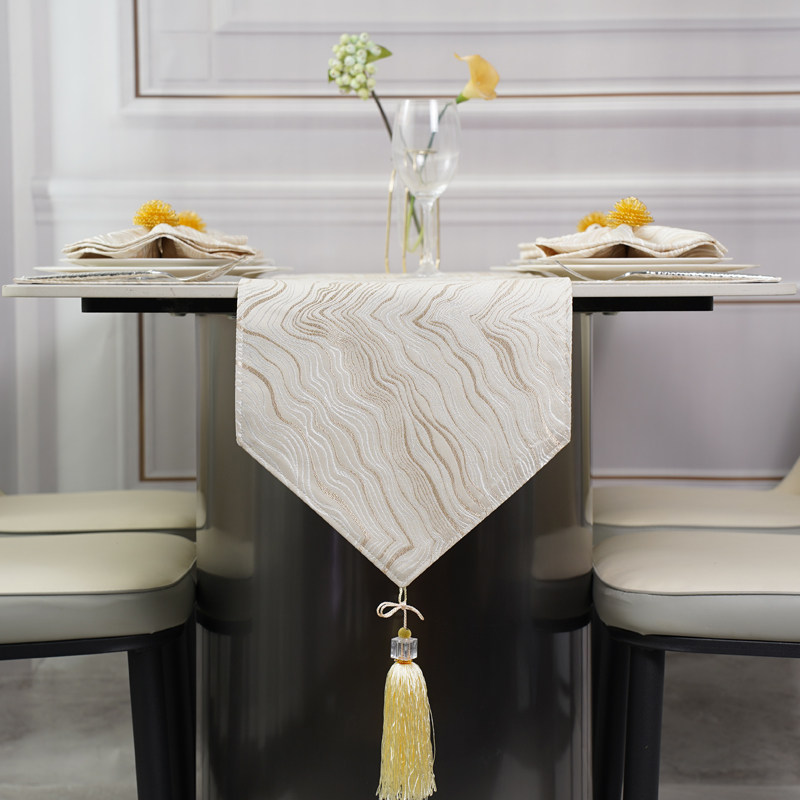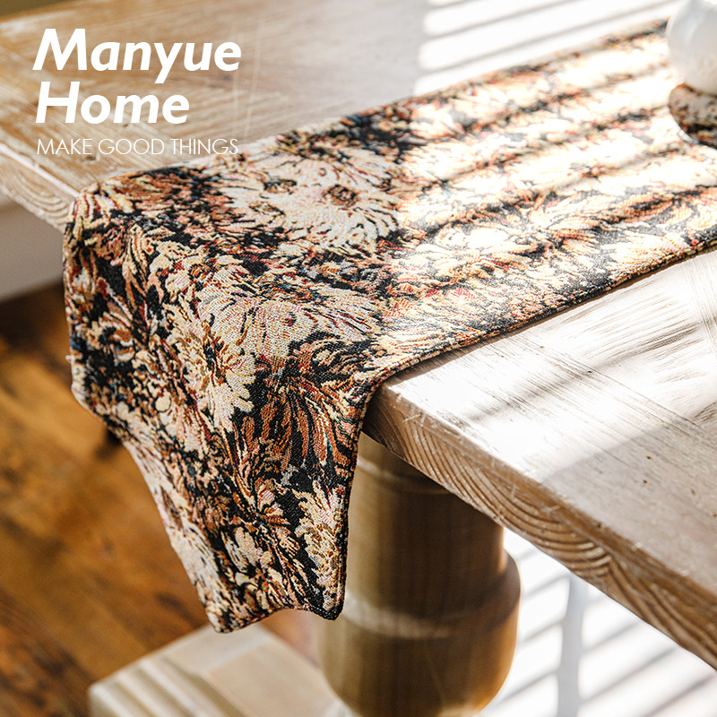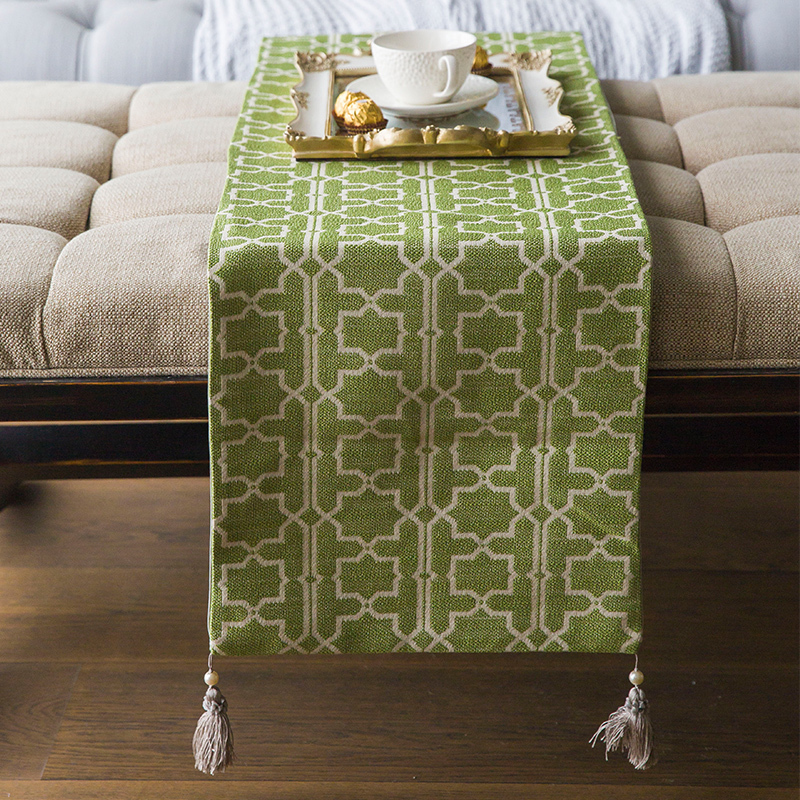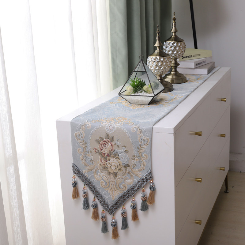 轻复古提花餐桌旗民族风活动摆台茶几旗布玄关餐边柜旗流苏床尾旗