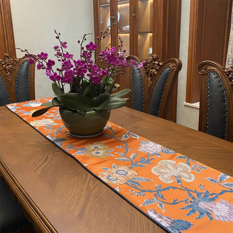 桌旗桌垫餐桌布茶几盖巾布艺刺绣绣花轻奢欧式美式花团锦簇中式