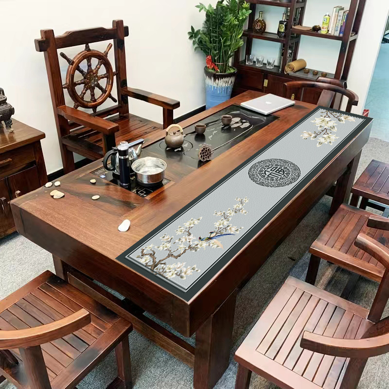 茶席禅意皮革茶巾桌布防水中国风桌旗新中式防水茶席皮革茶桌垫布