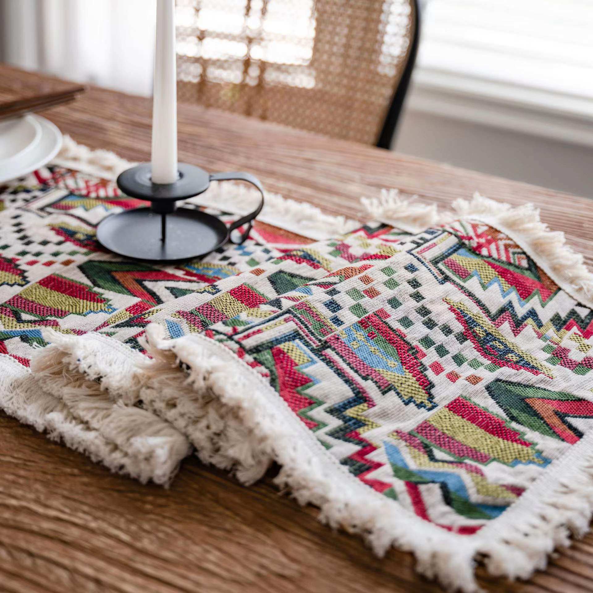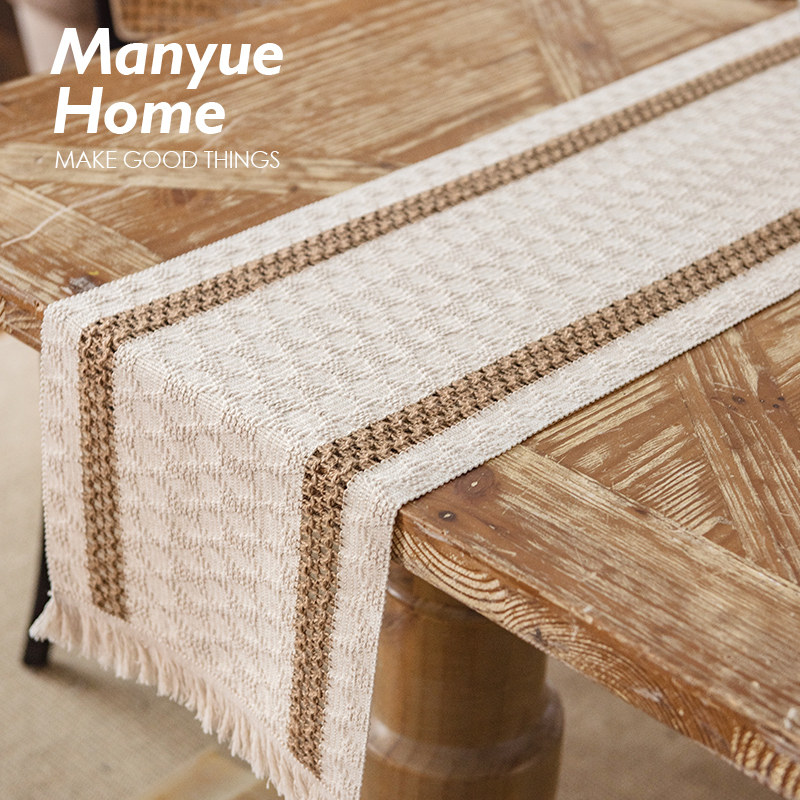 复古桌旗带流苏婚礼家庭餐桌布中式装饰布手工编织农舍棉麻桌垫