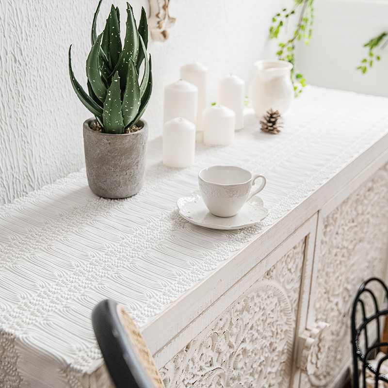 蔓越家 高级感白色蕾丝餐桌布桌旗茶几垫布长方形北欧床头柜台布