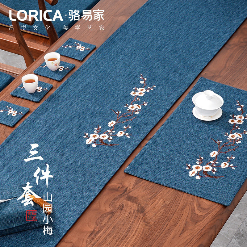 骆易家新中式桌旗中式茶席禅意茶桌布刺绣隔热茶几布艺茶台垫布茶