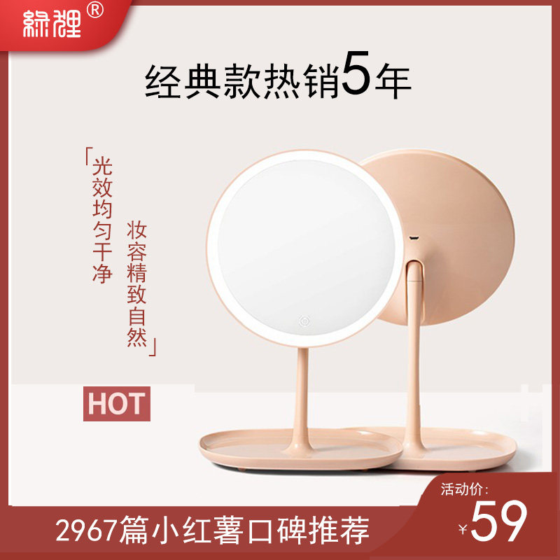 绿狸化妆镜带灯经典款宿舍led化妆镜学生梳妆台补光便携桌面镜子