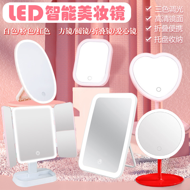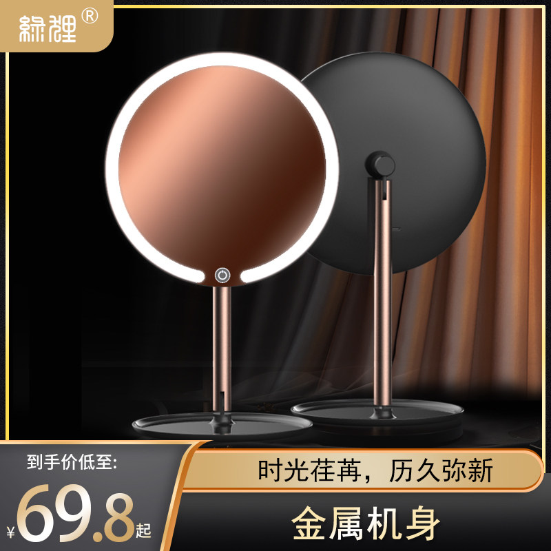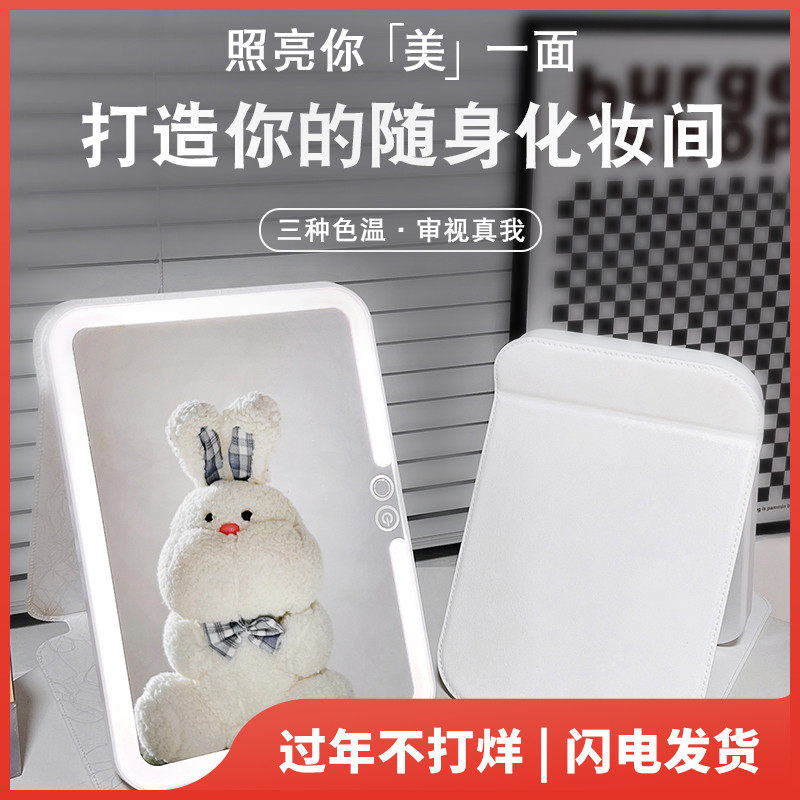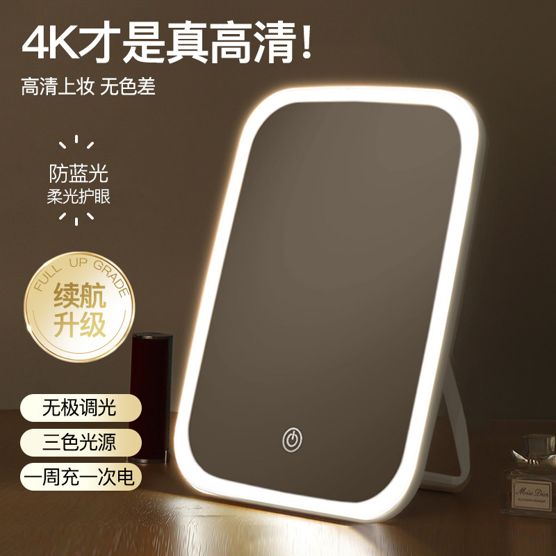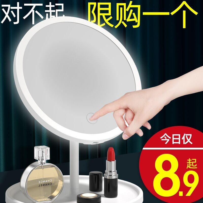 led化妆镜带灯光梳妆台学生宿舍桌面台式网红便携补光镜子小型ins