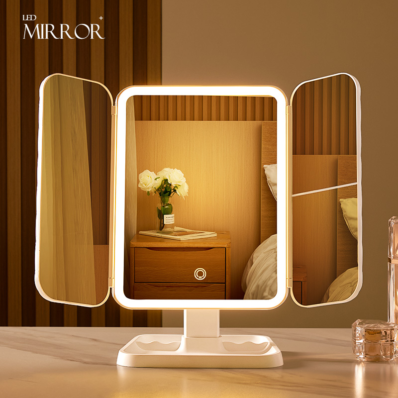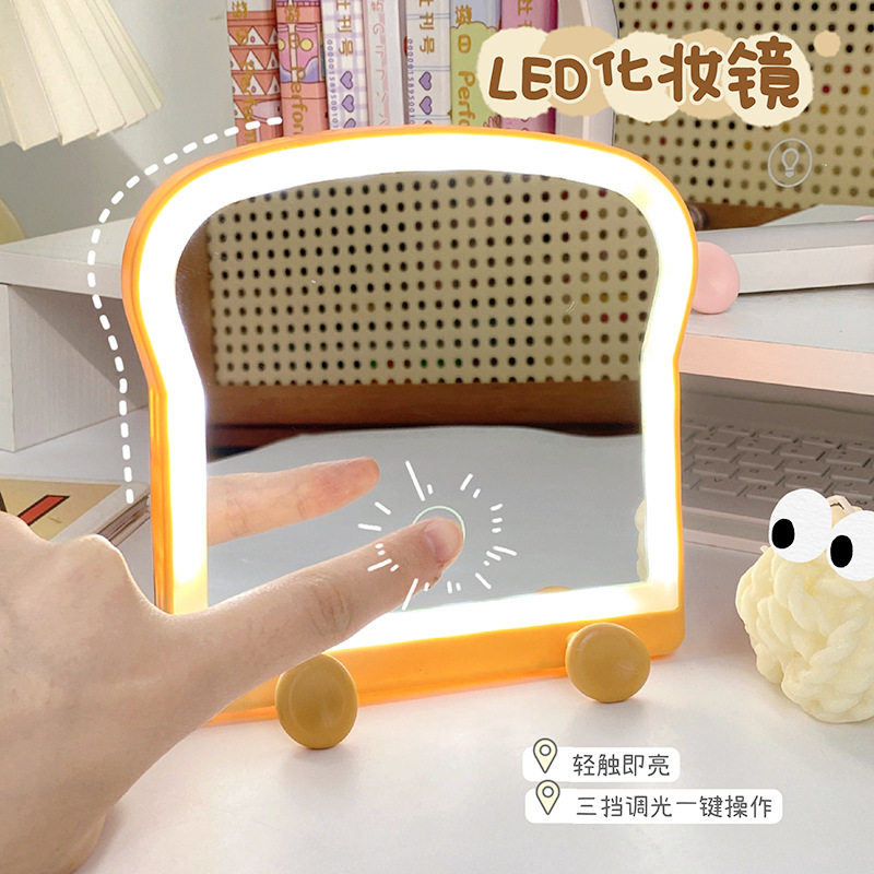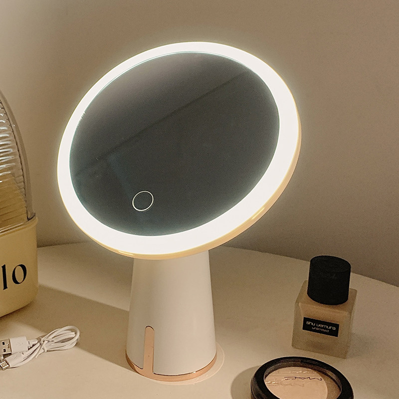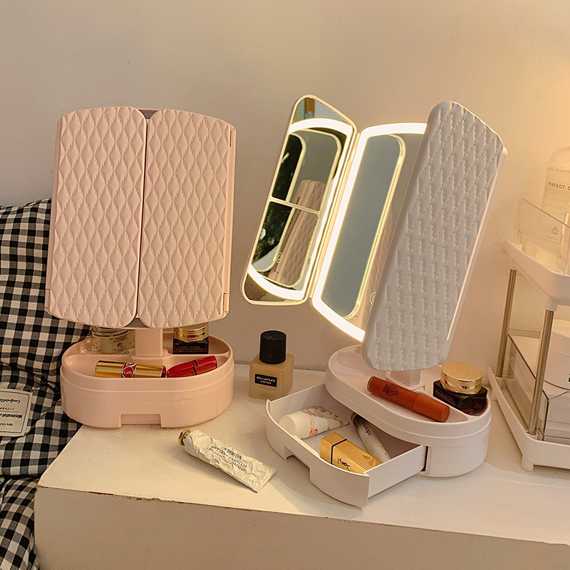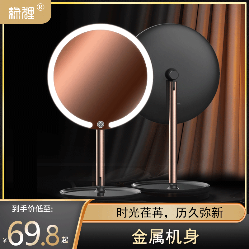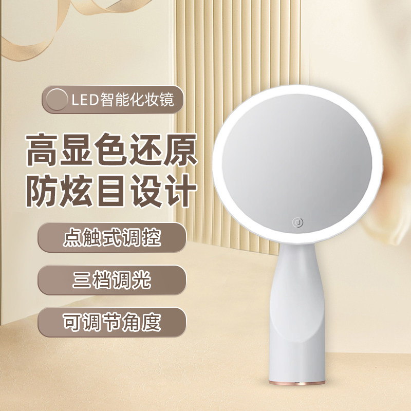 led化妆镜带灯光梳妆台学生宿舍桌面台式网红便携补光镜子小型ins