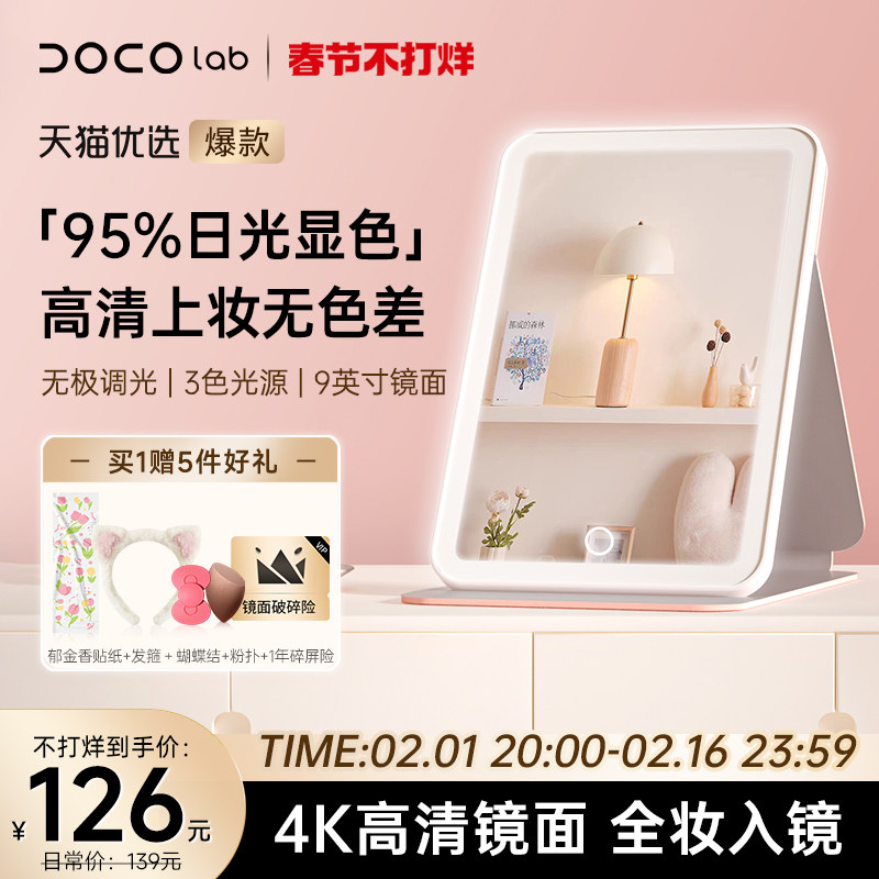 DOCO化妆镜便携可折叠带灯家用台式桌面led补光旅行梳妆台镜子