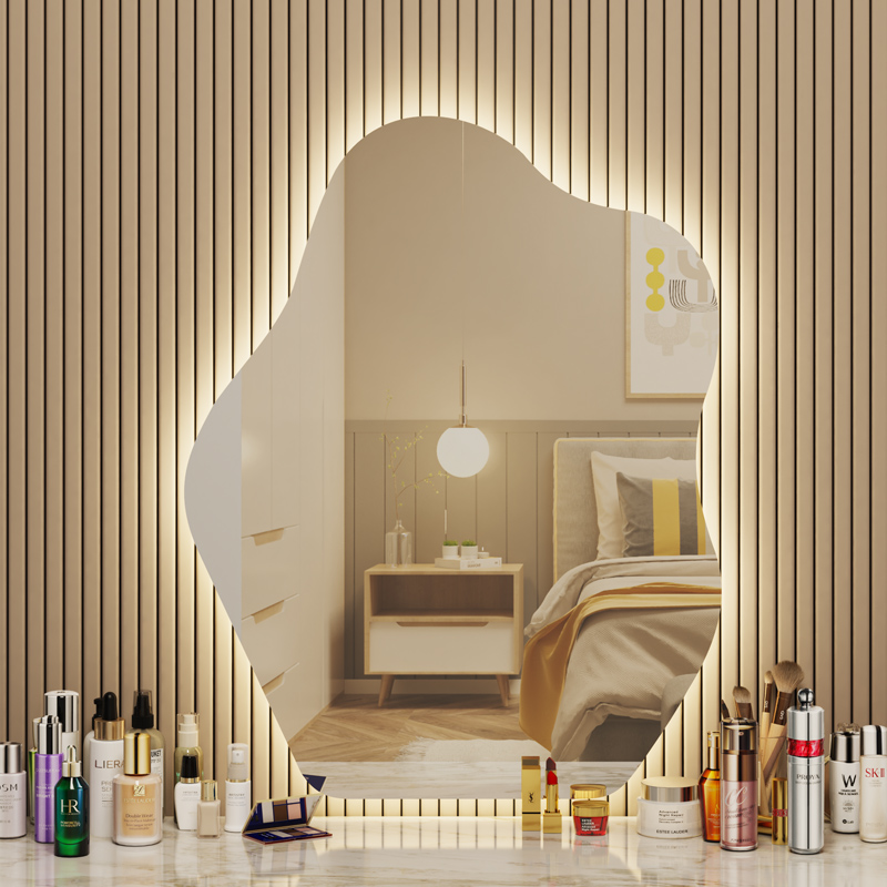 梳妆台镜子智能led挂墙式带灯发光壁挂卧室异形梳妆镜云朵化妆镜