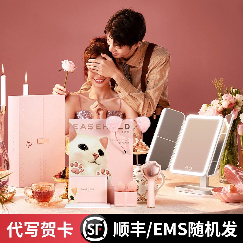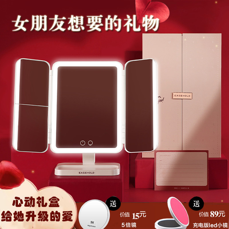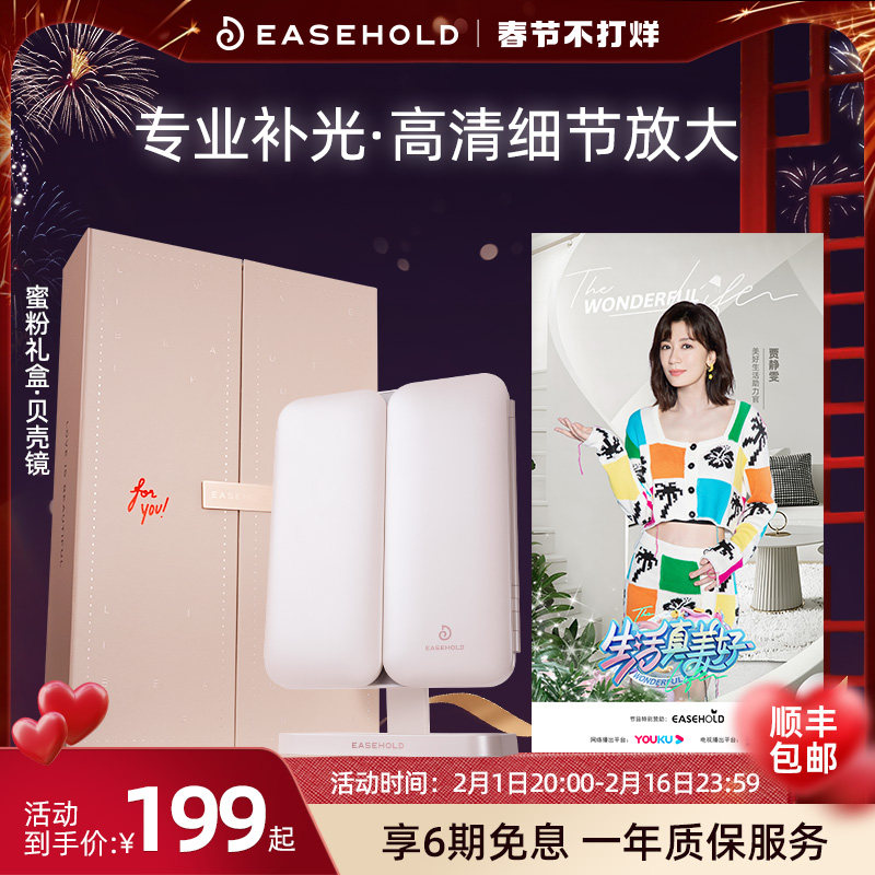 【豪华组合款】情人节礼物EASEHOLD化妆镜补光台式带灯梳妆贝壳镜