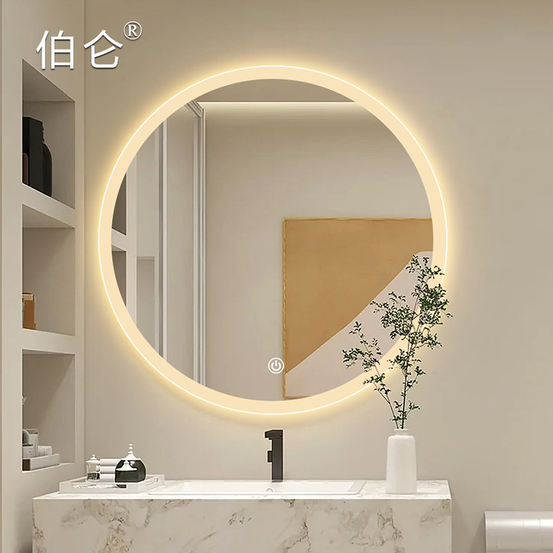 智能浴室圆镜挂墙卫生间镜子led圆形发光化妆镜带灯梳妆台镜壁挂