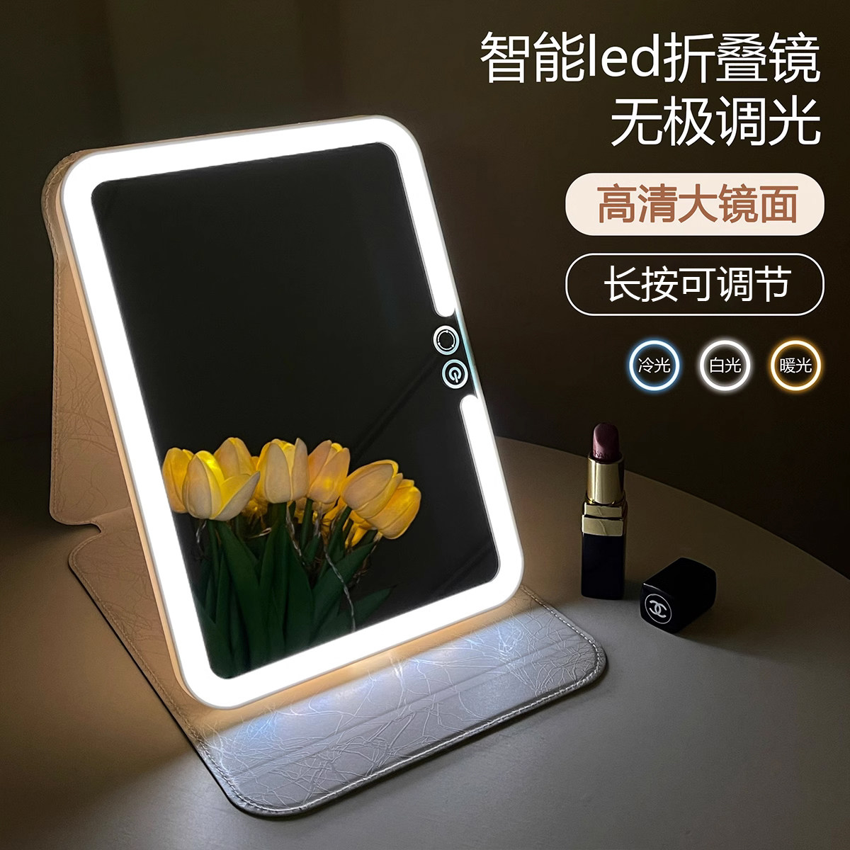 led化妆镜带灯补光女折叠网红学生ins风小镜子宿舍桌面便携梳妆镜
