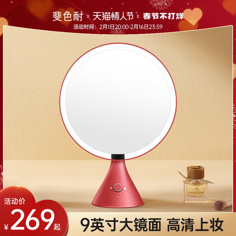 简约台式带灯梳妆镜补妆镜LED化妆镜网红智能镜大号桌面智能nis镜