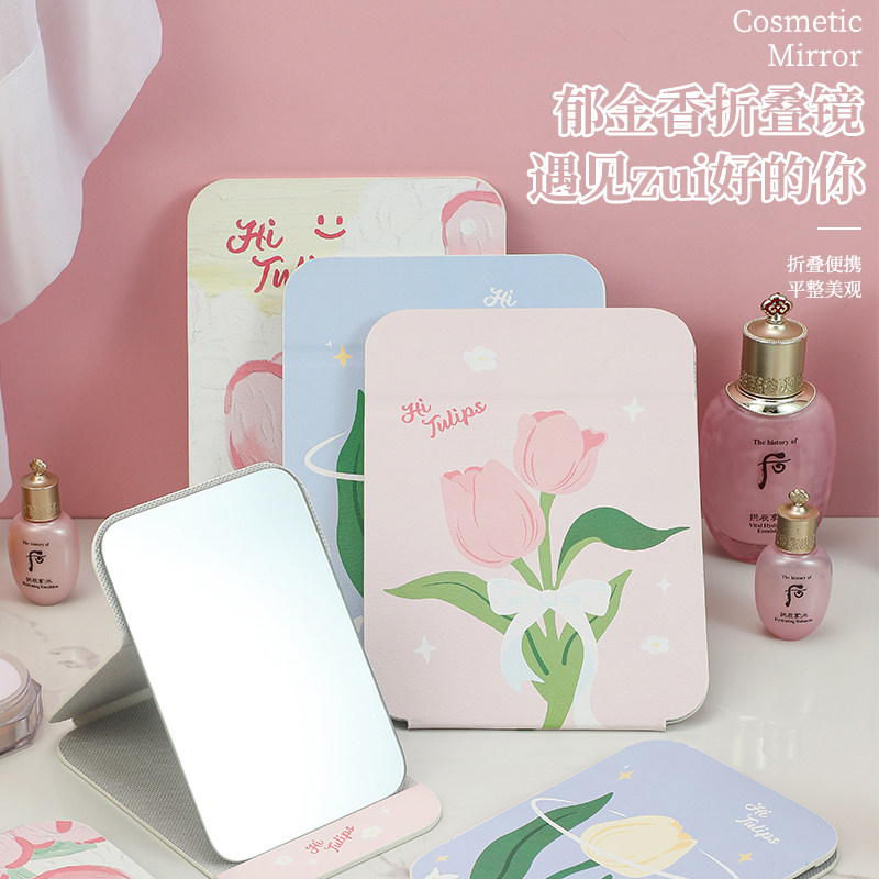 折叠镜子化妆镜随身便携家用学生宿舍办公室台式桌面可立梳妆镜小
