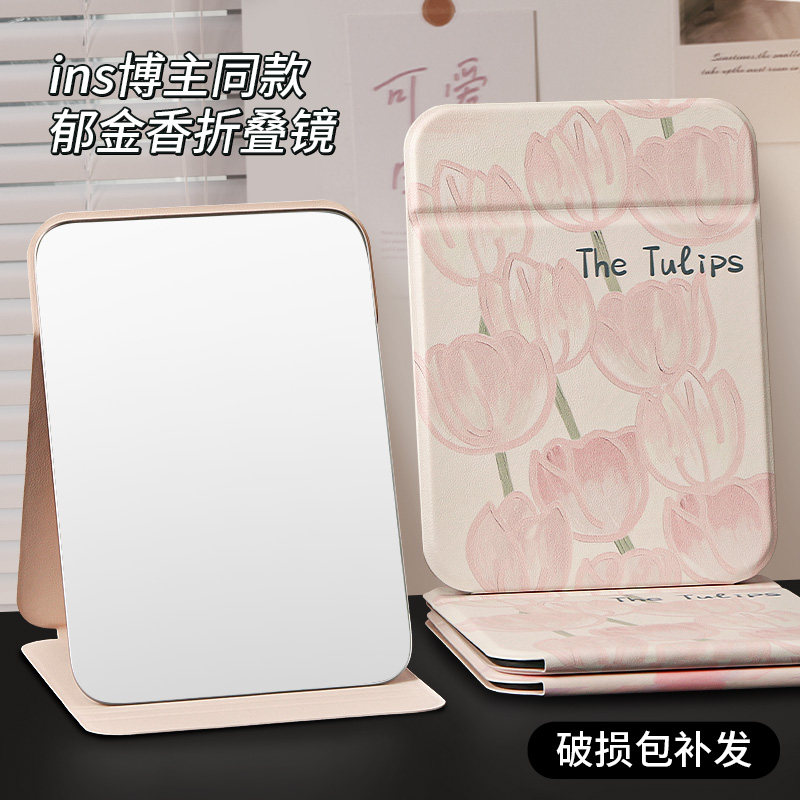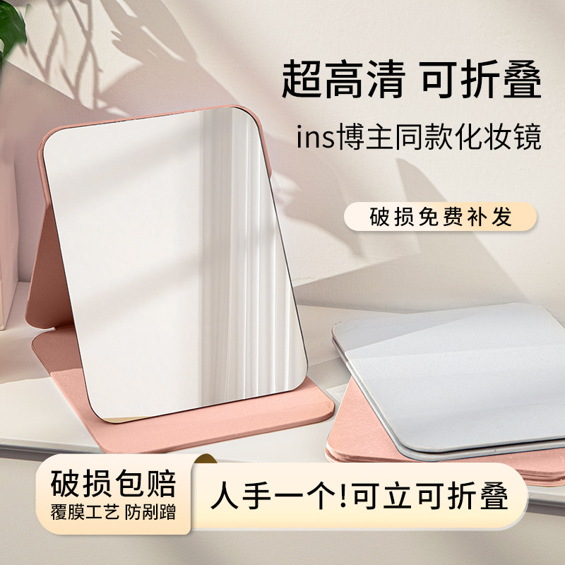 ins风折叠镜子大号梳妆台单面便携台式桌面可立学生宿舍化妆镜