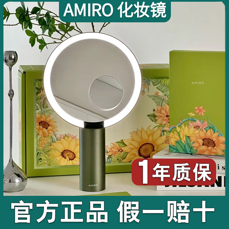 AMIRO觅光化妆镜台式led带灯补光镜子宿舍桌面梳妆镜美妆小黑镜女