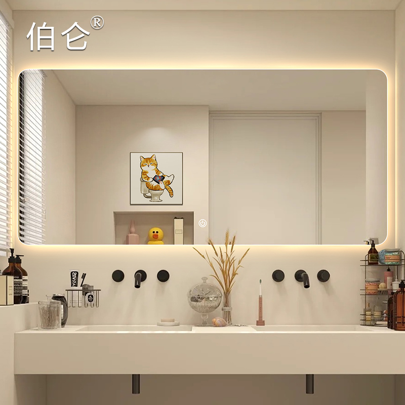 BOLEN 不规则智能装饰镜双台盆卫生间浴室镜子壁挂式梳妆台化妆镜