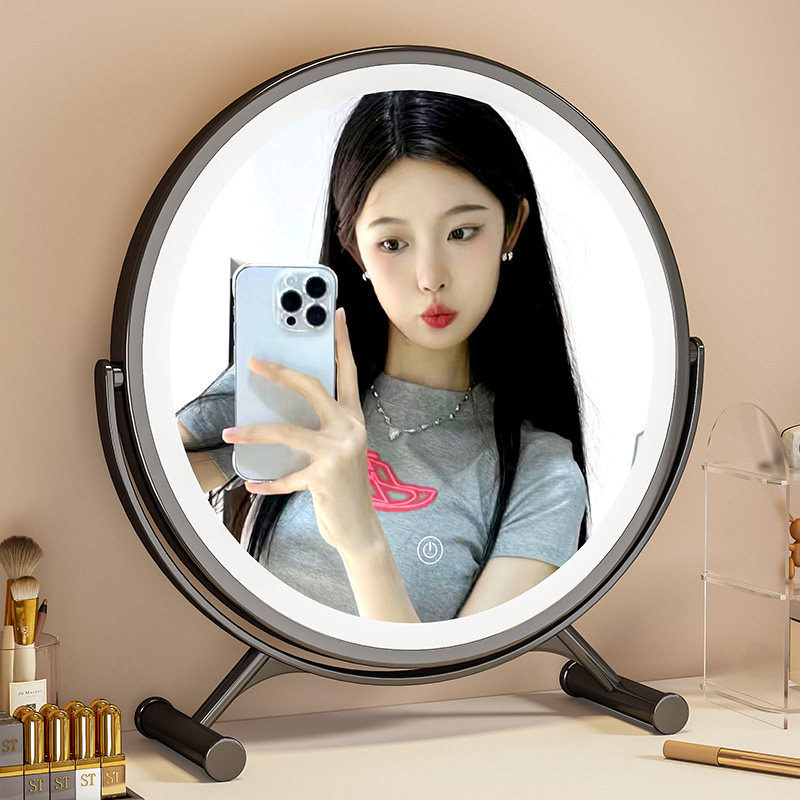 LED梳妆镜智能大圆镜卧室充电美妆镜网红镜子台式桌面化妆镜带灯