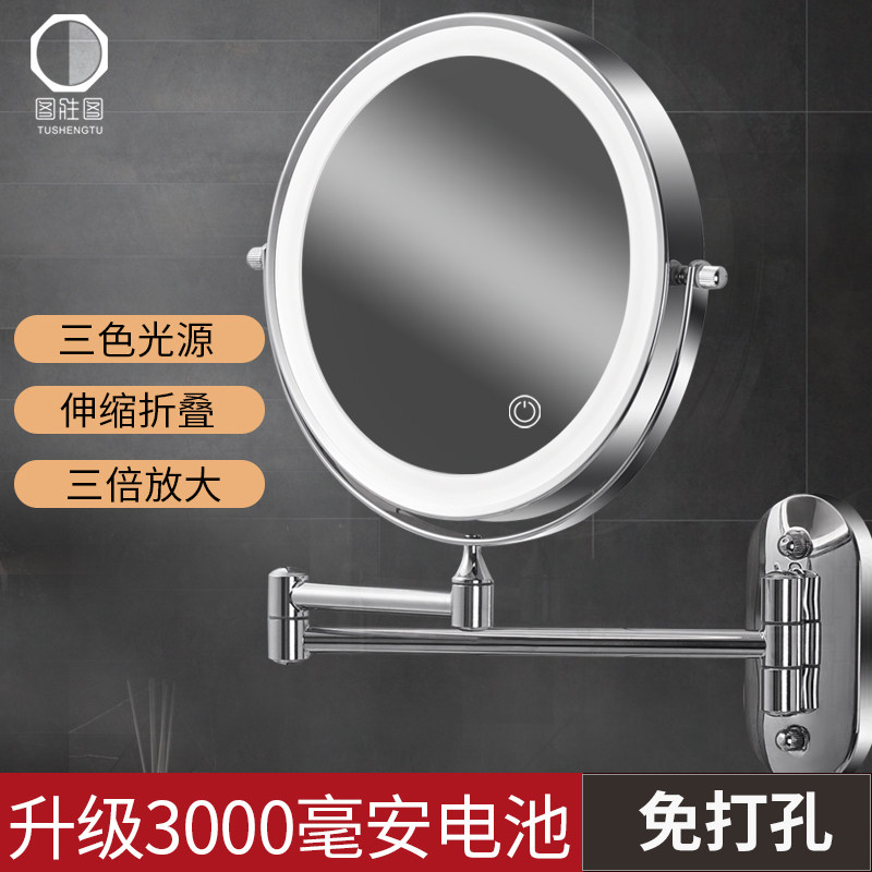 浴室化妆镜led免打孔壁挂折叠带灯镜子酒店卫生间伸缩双面梳妆镜