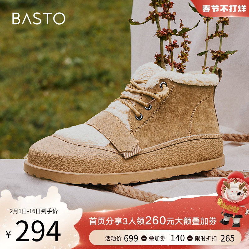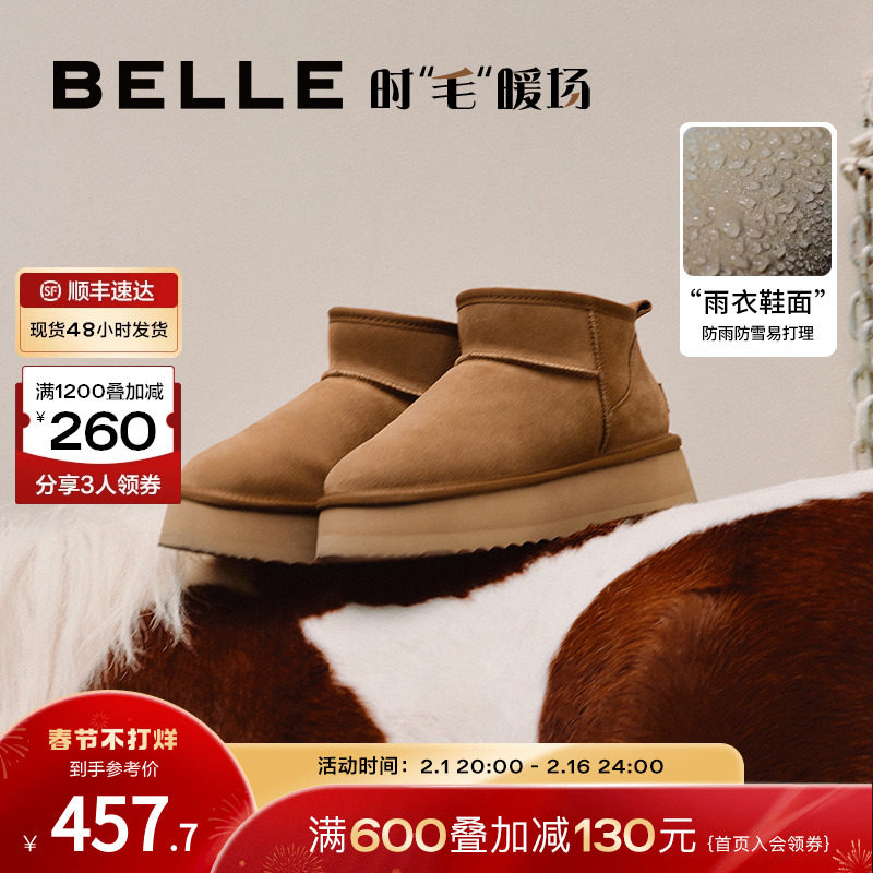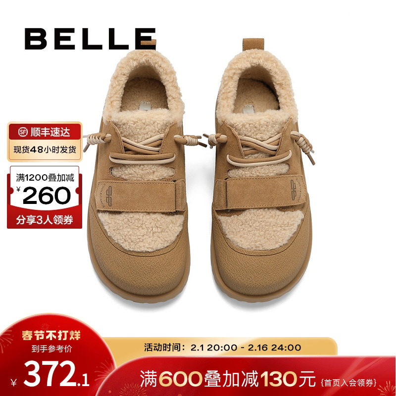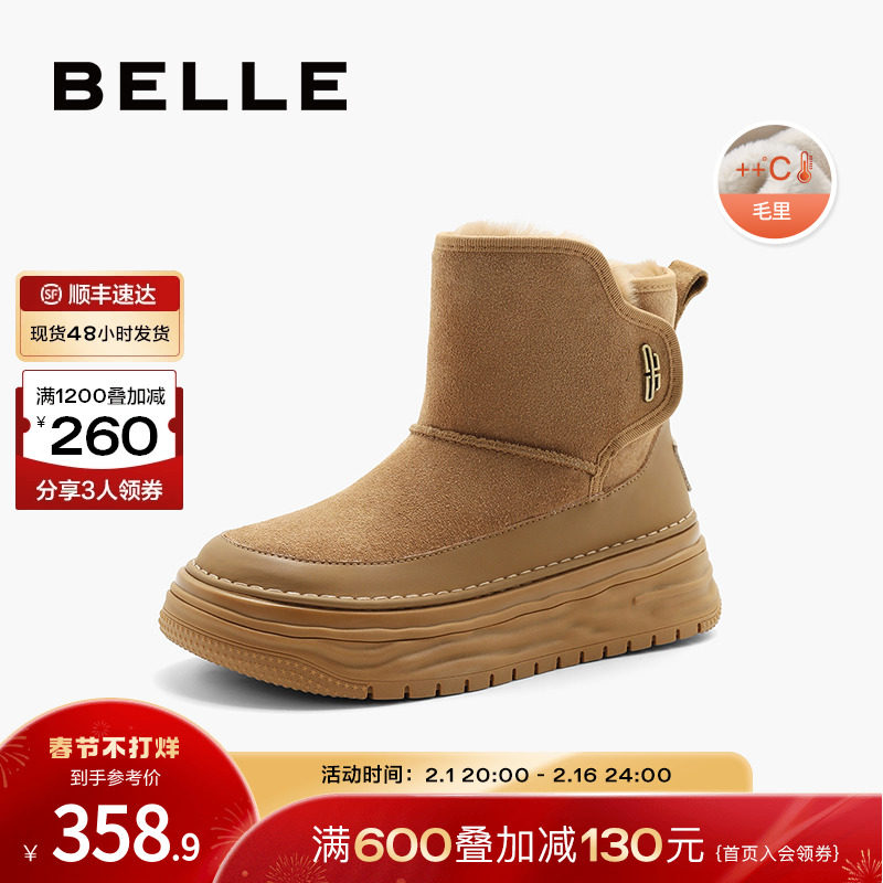 百丽保暖厚底棉鞋雪地靴23冬季新款女靴子羊毛加绒短靴B1770DD3