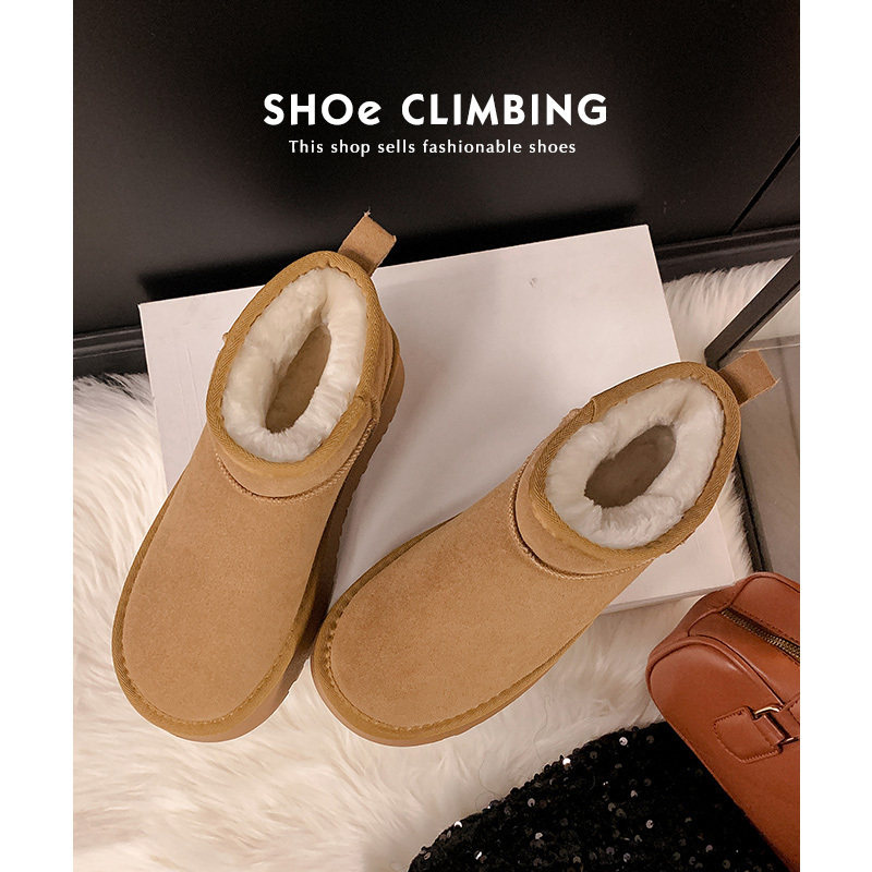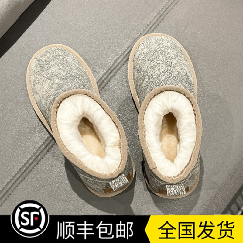 2023冬季新款雪地靴女周冬雨同款mini加绒加厚羊皮毛一体保暖棉鞋
