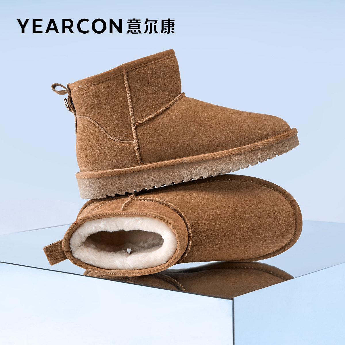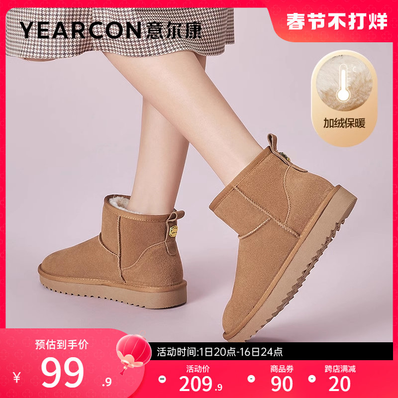 意尔康女鞋冬季雪地靴平底短靴磨砂棉鞋女士加绒保暖休闲英伦