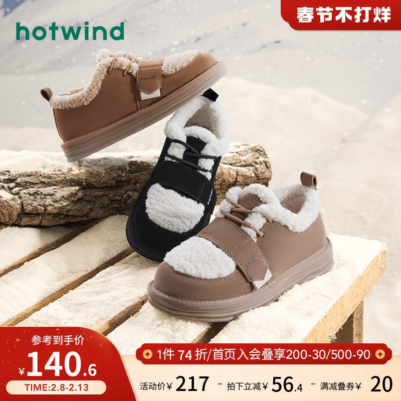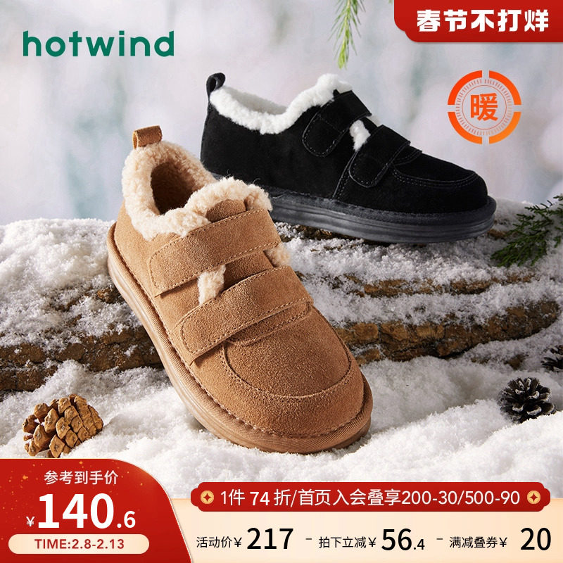 热风女鞋23冬新款厚底雪地靴女魔术贴加绒加厚防滑美拉德棉鞋女