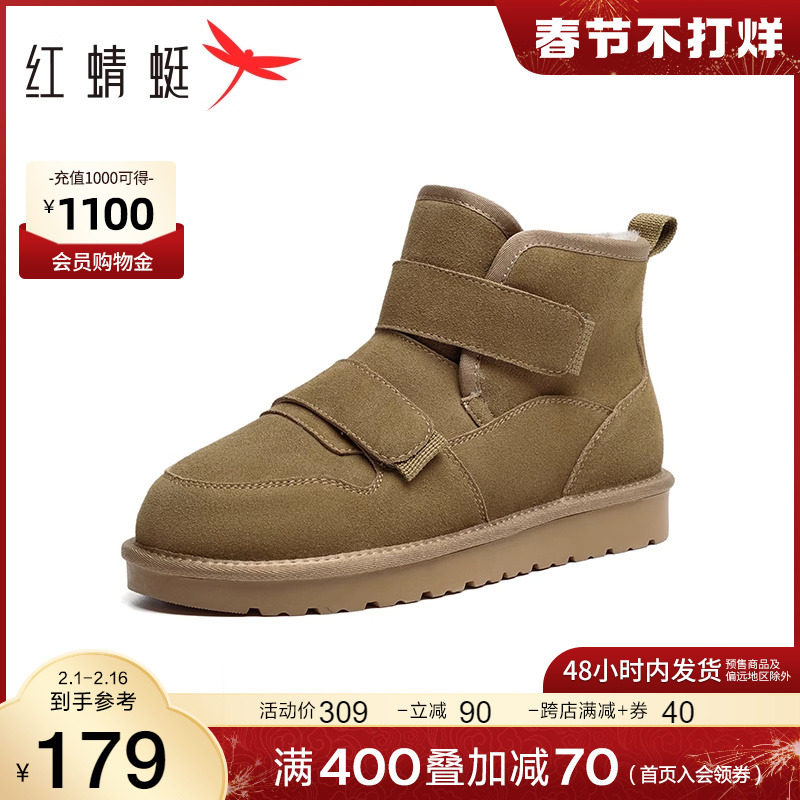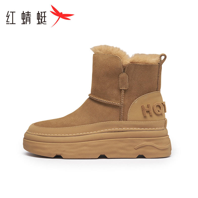 红蜻蜓雪地靴冬季女款短靴加绒女鞋防滑面包鞋增高棉鞋厚底雪地棉