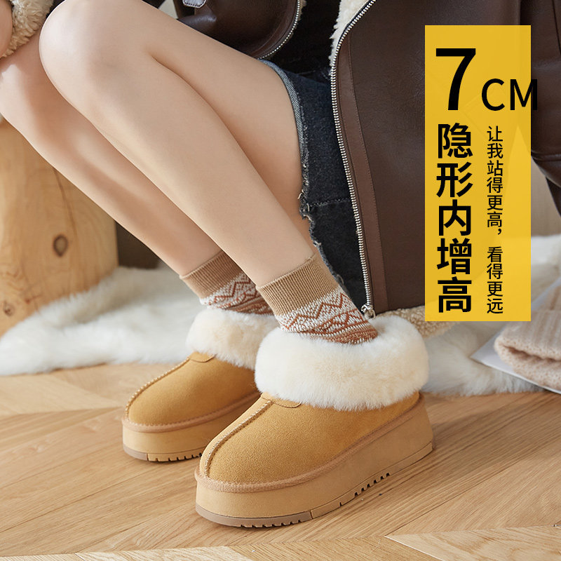 周冬雨同款增高厚底雪地靴女2023冬季加绒加厚羊皮毛一体棉鞋短靴