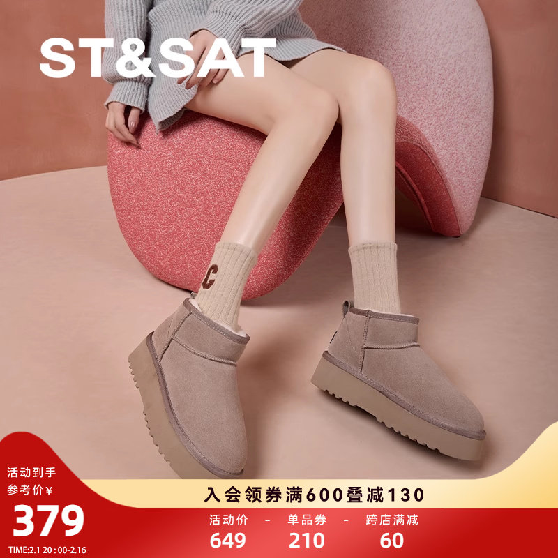 星期六雪地靴女款2023年冬季新款女靴羊毛女鞋加绒棉鞋厚底短靴