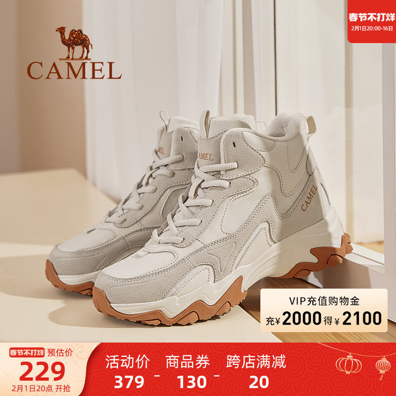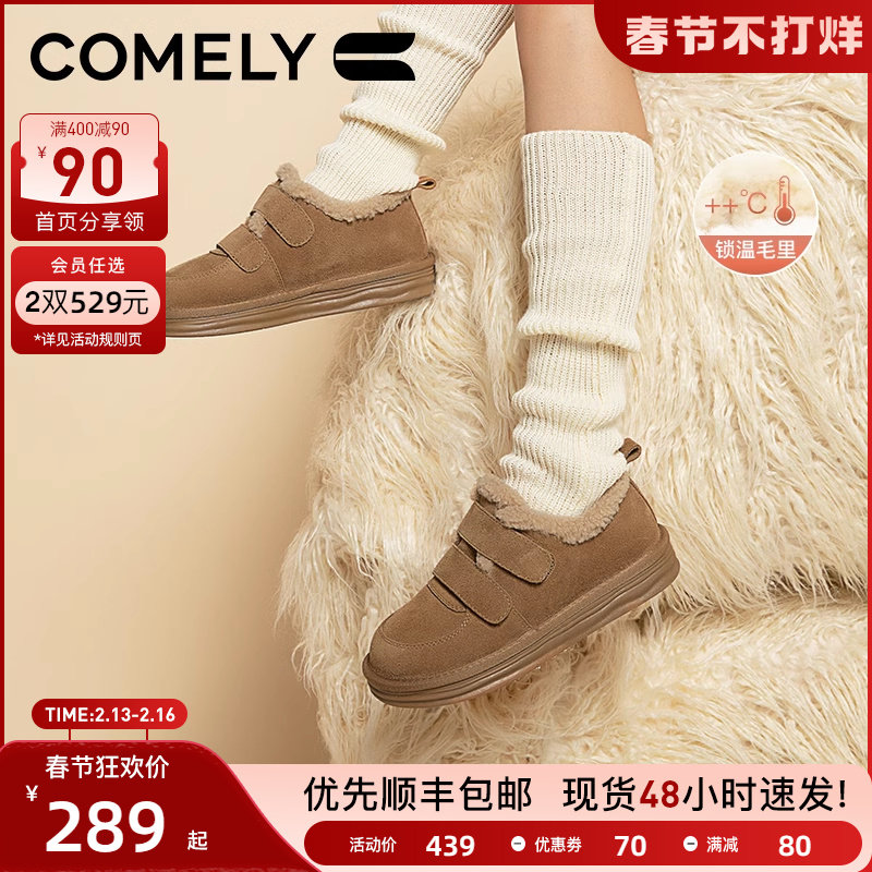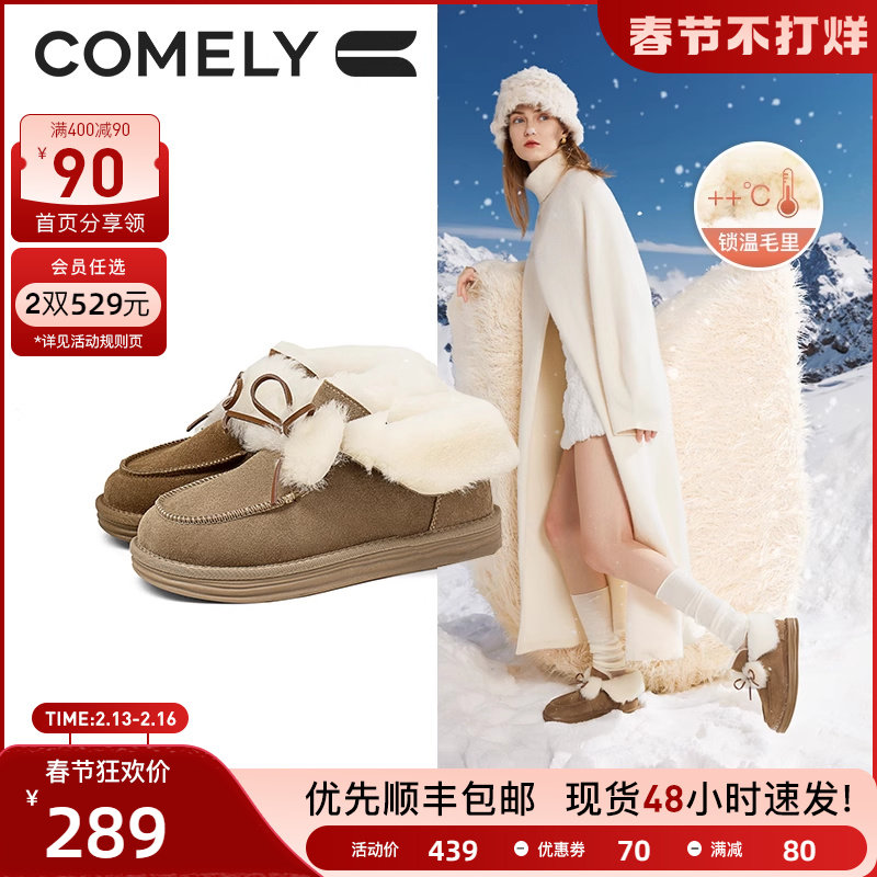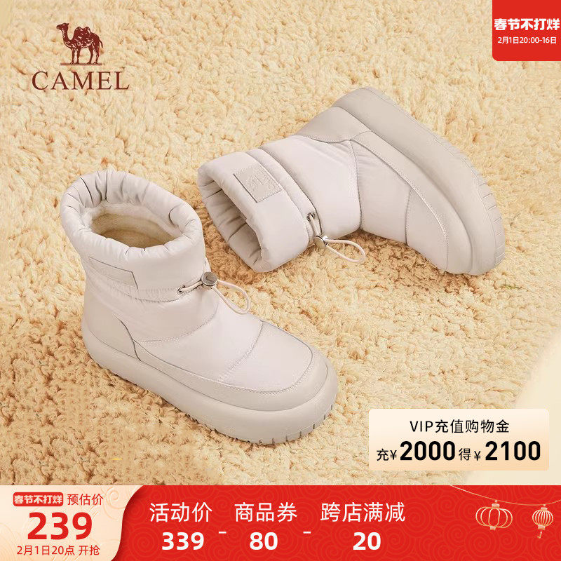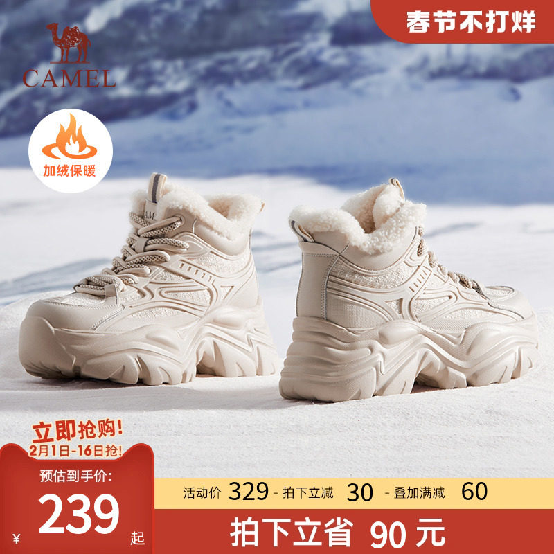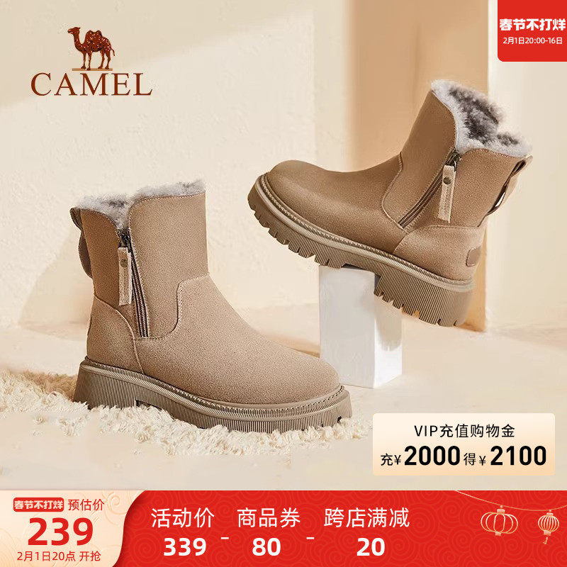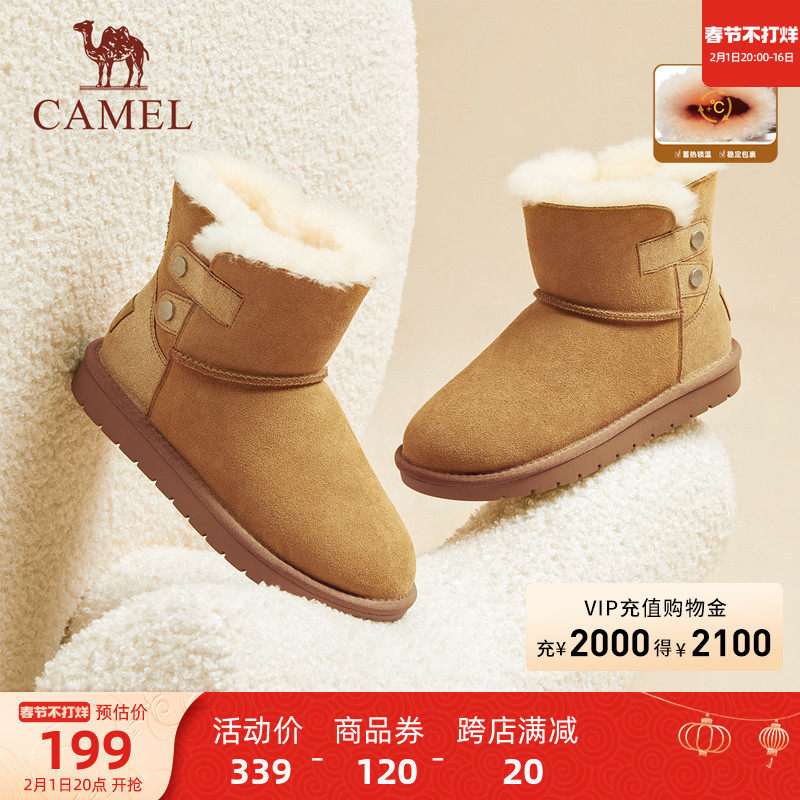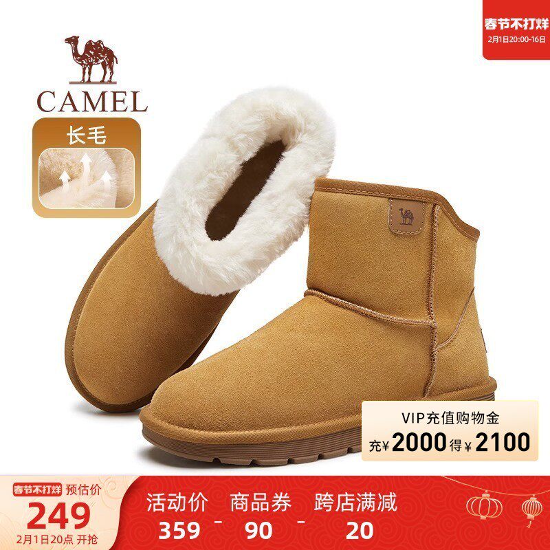骆驼女鞋2023冬季新款雪地靴女百搭皮毛一体厚底加绒保暖短靴棉鞋
