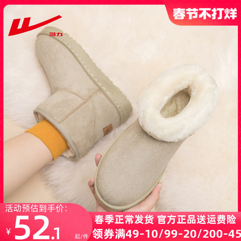 回力雪地靴女冬加绒加厚2023新款冬季保暖东北棉鞋皮毛一体短靴女