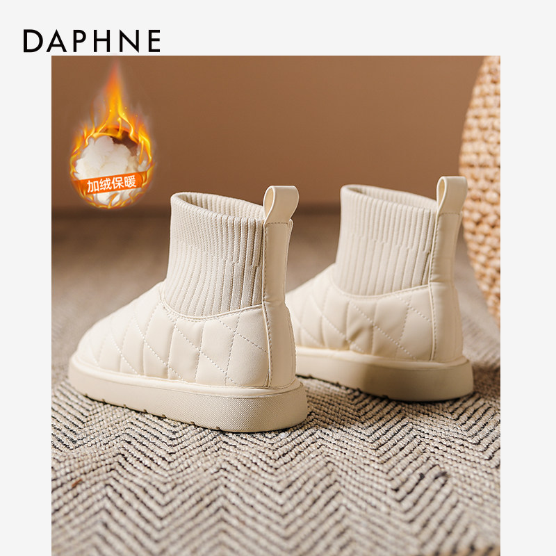 达芙妮厚底雪地靴女2023新款冬季加绒保暖面包棉鞋女增高短筒靴子