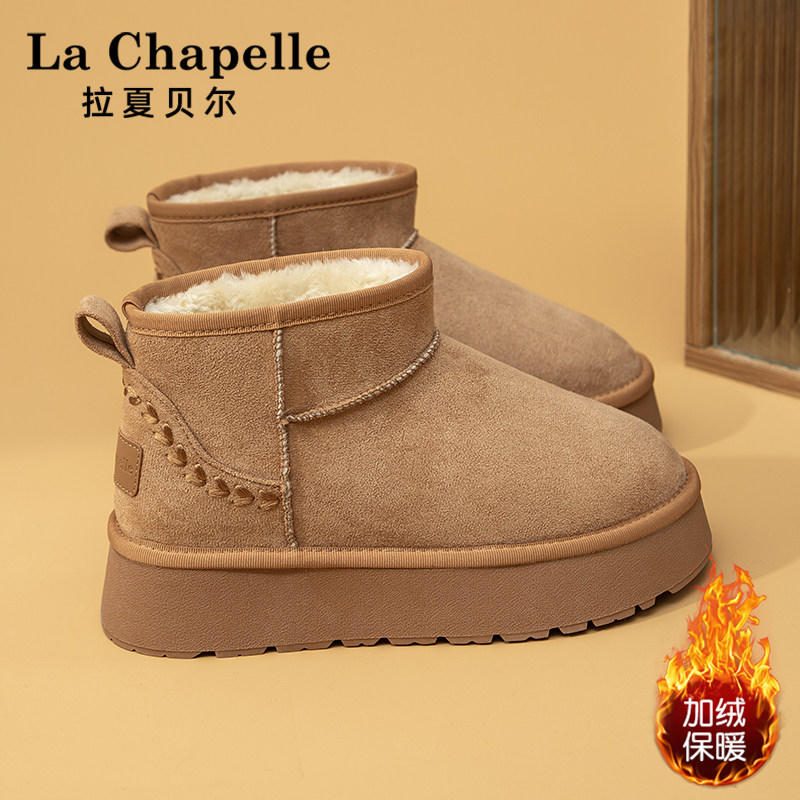 拉夏贝尔雪地靴女款2023新款冬季加绒加厚东北棉鞋女外穿毛毛短靴