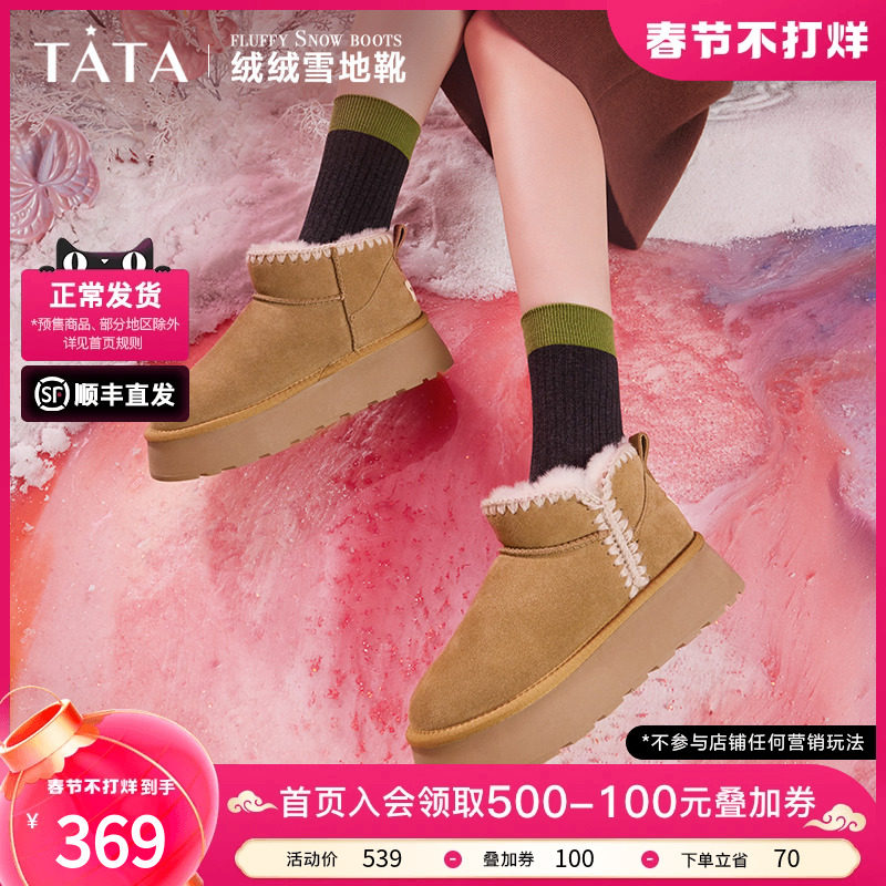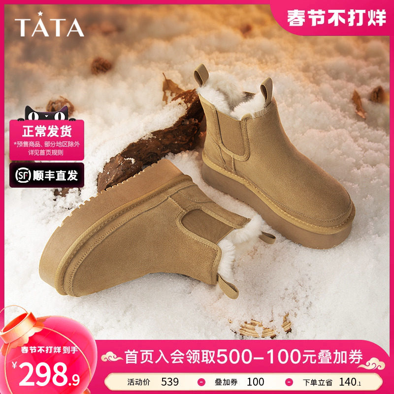 Tata他她牛奶面包雪地靴女冬季加绒厚底棉鞋防滑2023新款WDX17DM3