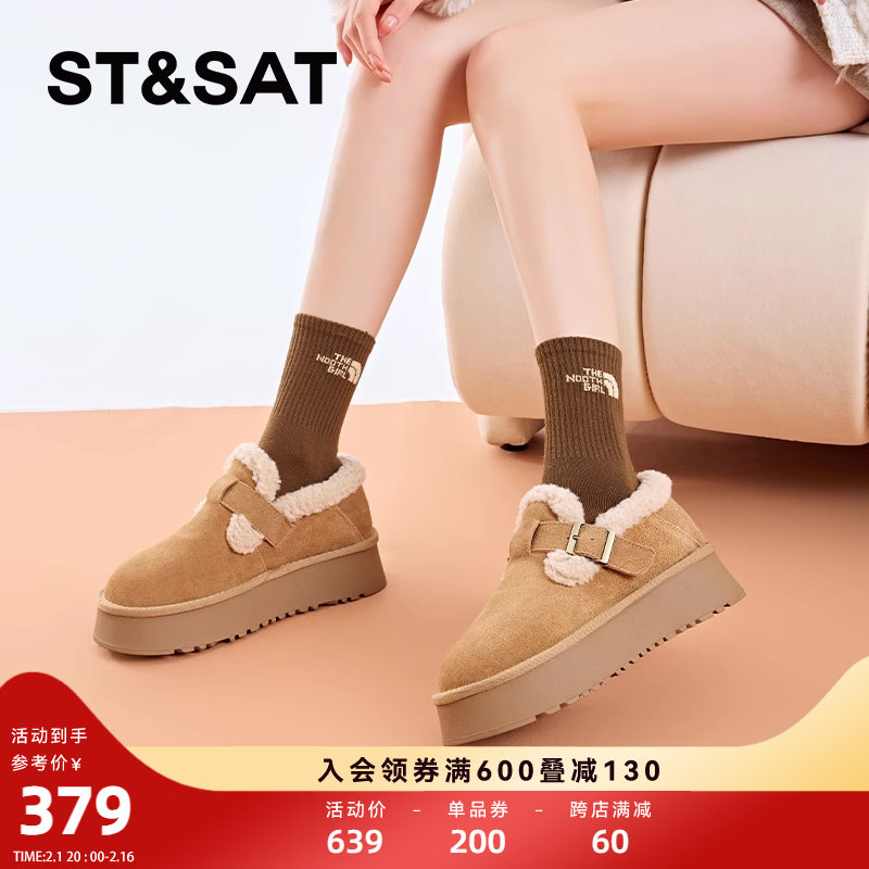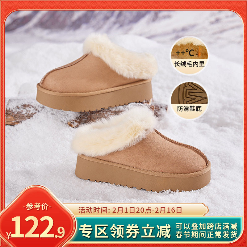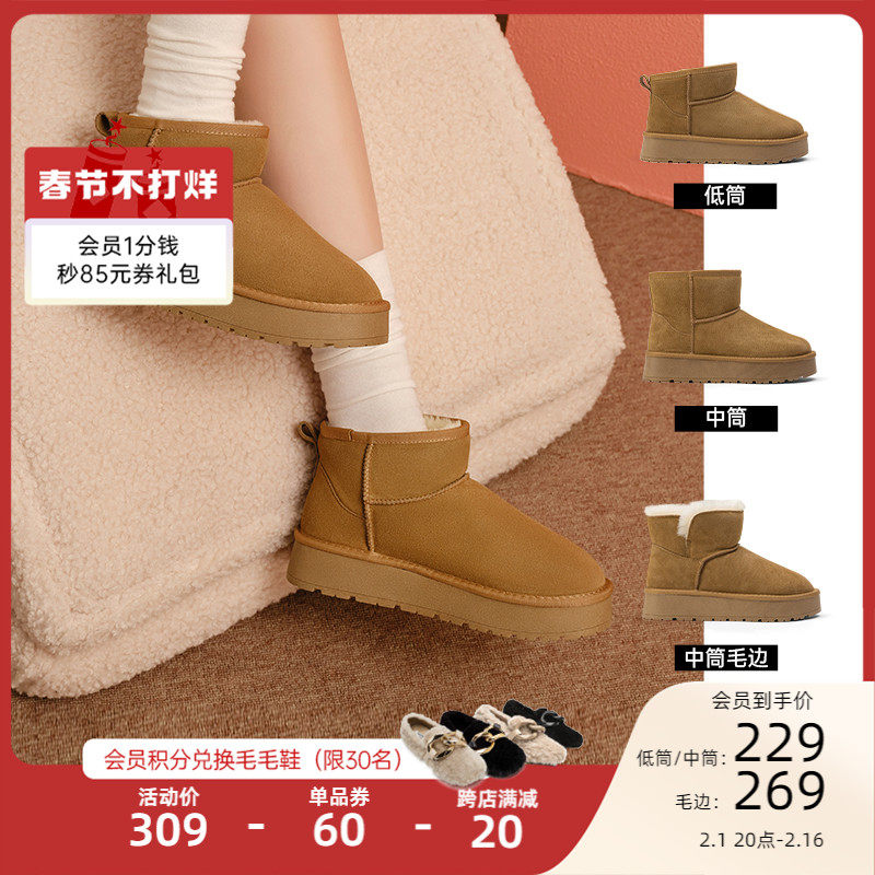星期六厚底加绒保暖雪地靴女2023冬季新款圆头毛毛鞋百搭舒适棉鞋