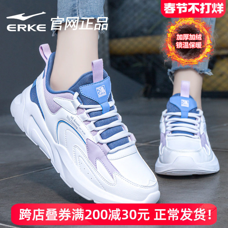 鸿星尔克女鞋老爹鞋冬季加绒保暖棉鞋官方旗舰店皮面休闲运动鞋女