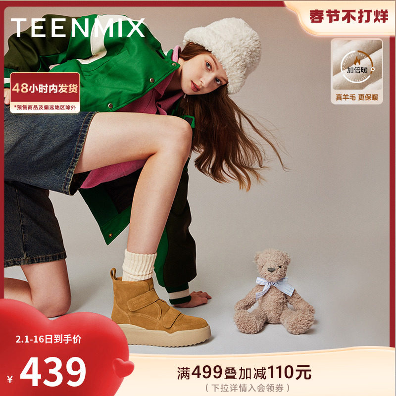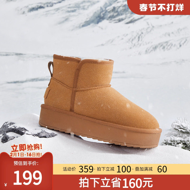 柒步森林"小暖炉"牛反绒厚底周冬雨同款雪地靴保暖加绒棉鞋子女冬