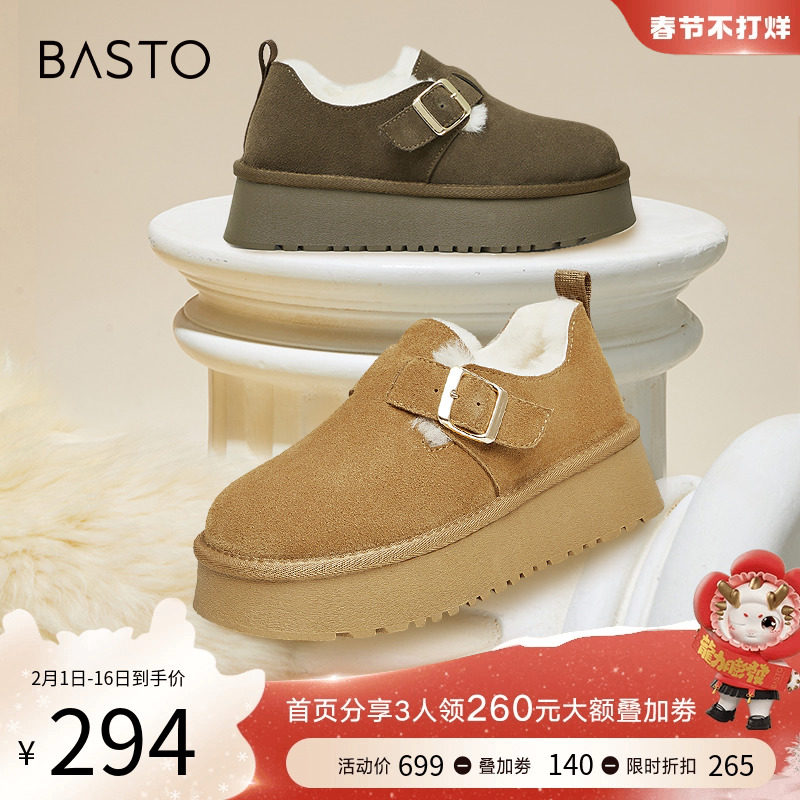 百思图23冬商场新款加绒雪地靴毛毛鞋面包棉鞋厚底女短靴LD626DM3
