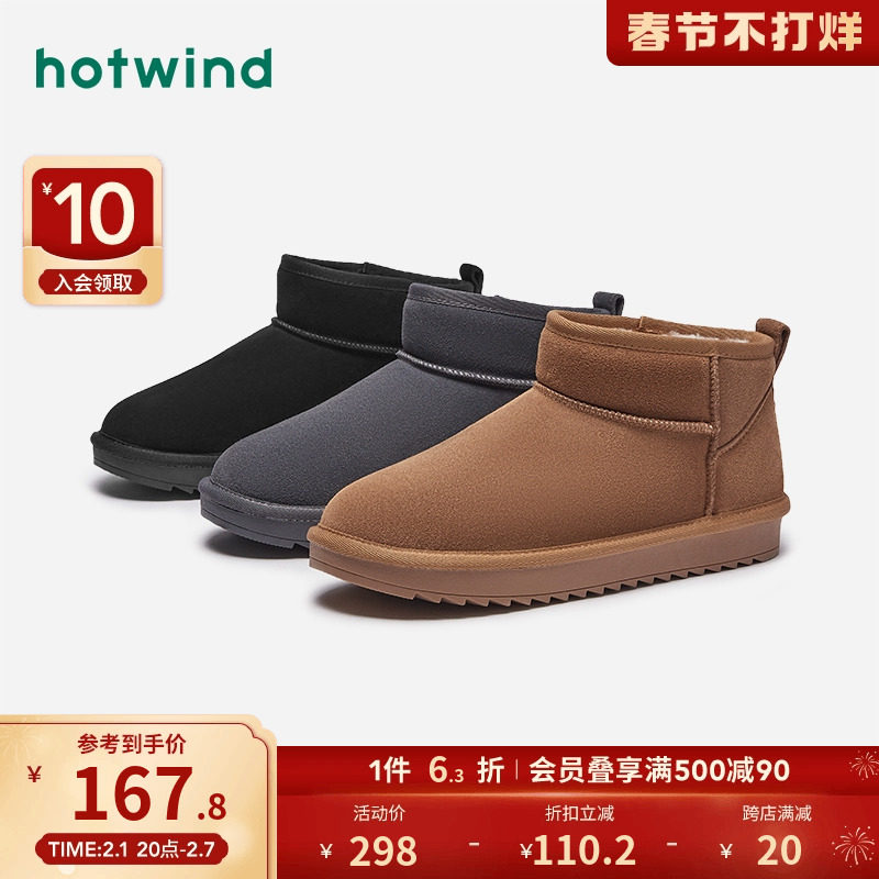 热风男鞋2023冬季新款男士时尚休闲靴保暖短筒棉鞋加绒加厚雪地靴