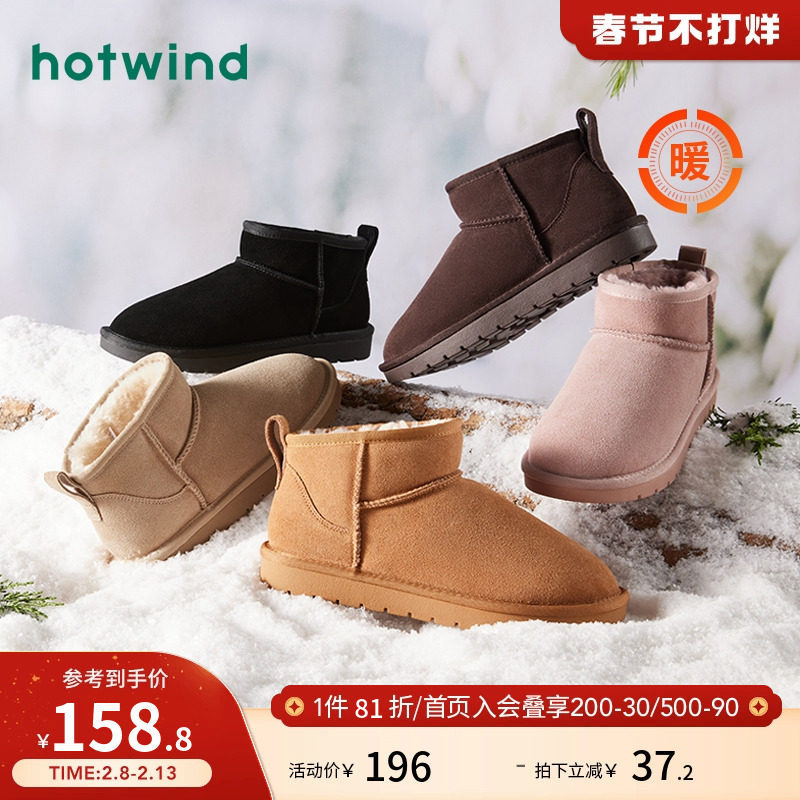 热风女鞋23冬新款加绒棉鞋女美拉德防滑保暖靴子拼色保暖雪地靴女