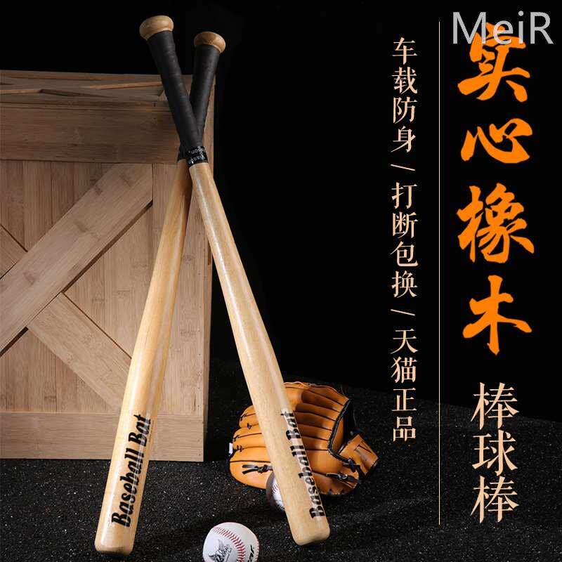 橡木棒球棒实心加厚车载实木棒球棍防身武器垒球棒球杆硬木送棍套