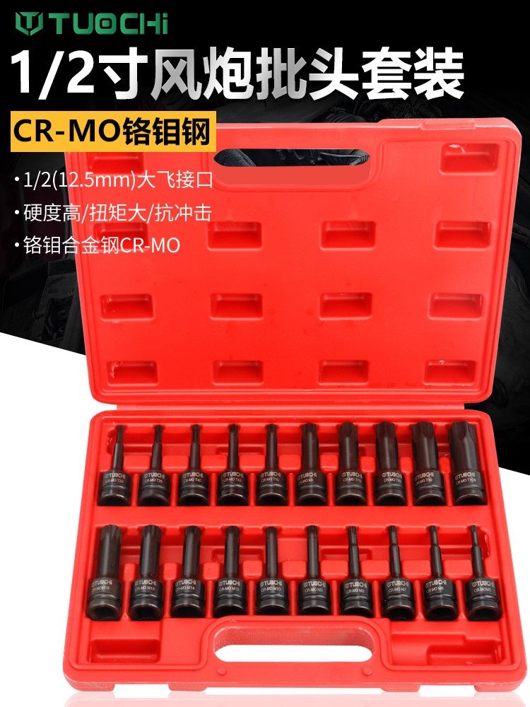 拓驰1/2大飞棘轮风炮连体批头气动内六角旋具套筒套装加长扳手H6
