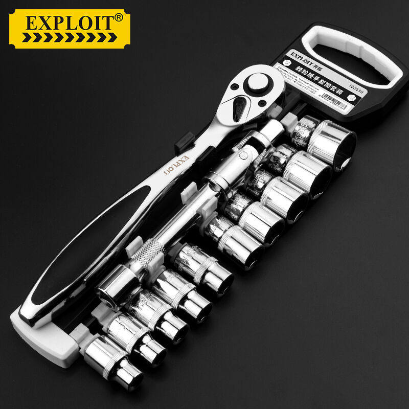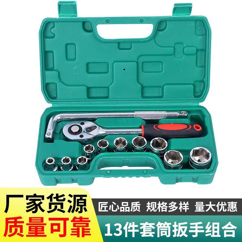 13件套筒扳手组合扳手 汽保套装棘轮扳手 长弯杆套筒五金工具
