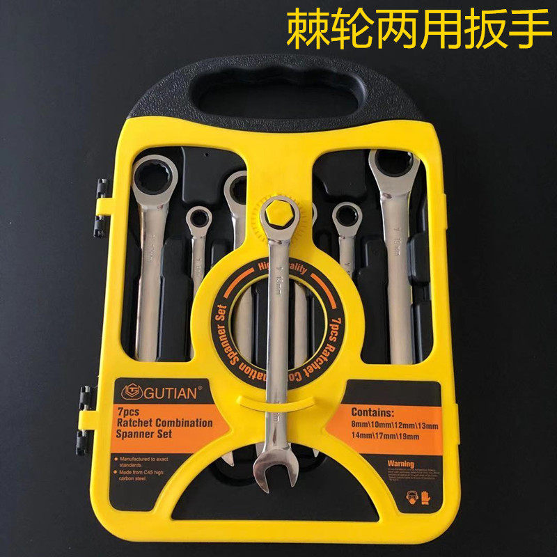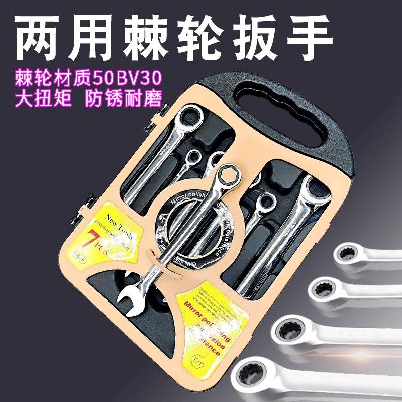 武函7件套棘轮扳手汽修五金多功能双向自动两用梅花开口快速板子