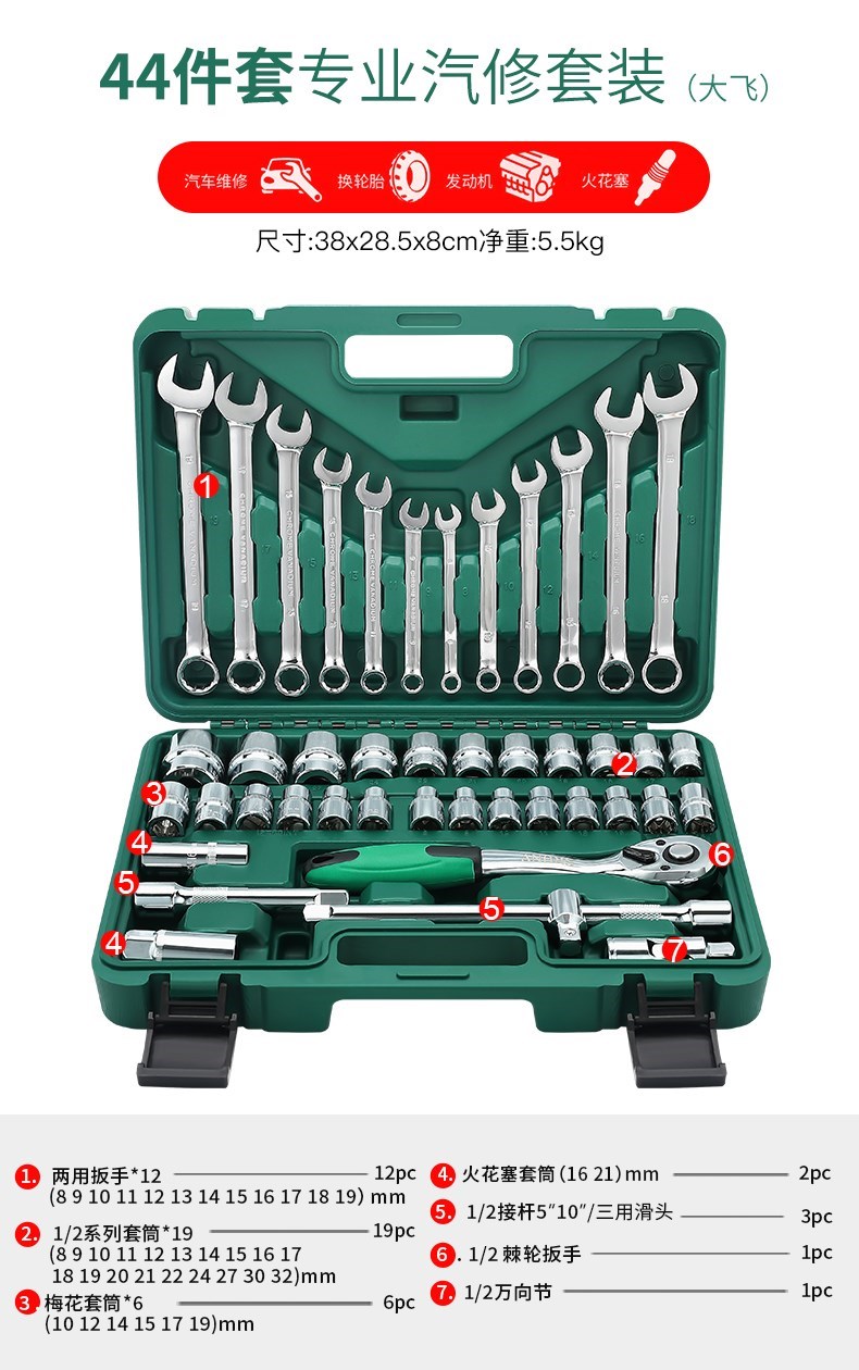 套筒套管扳手套装大飞3237件多功能棘轮快速扳手汽修工具组合套装
