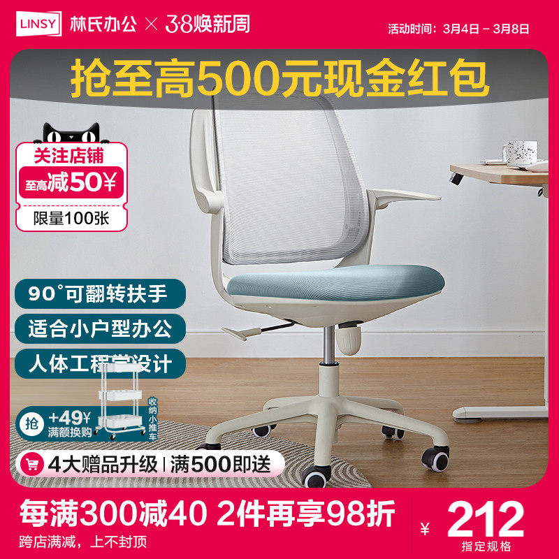 林氏木业电脑椅家用书房学生学习写字椅久坐舒服旋转升降办公椅子