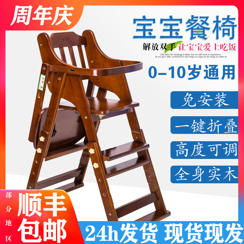 儿童餐椅宝宝吃饭椅实木家用折叠便携带多功能婴儿BB餐座椅子酒店