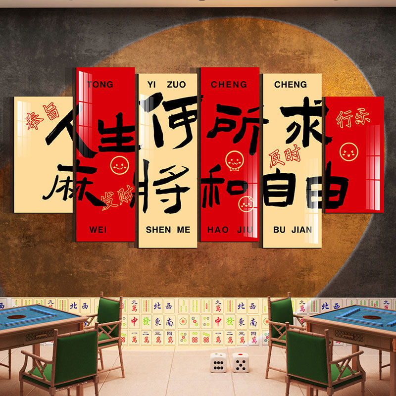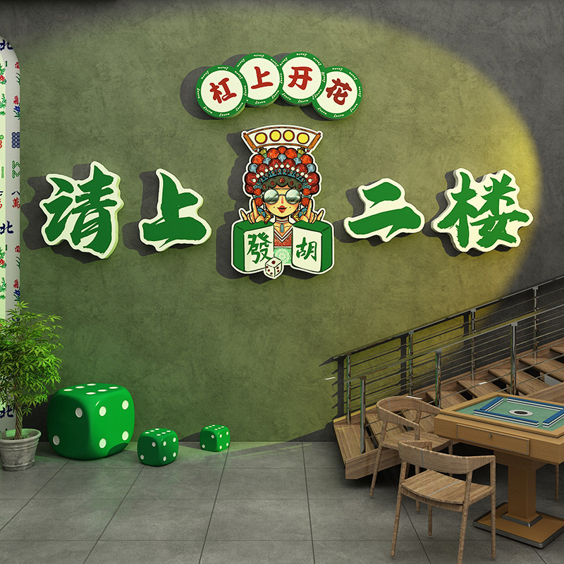 网红麻将馆装饰品棋艺牌室布置摆件雀房文化贴纸挂画楼梯扶手墙面