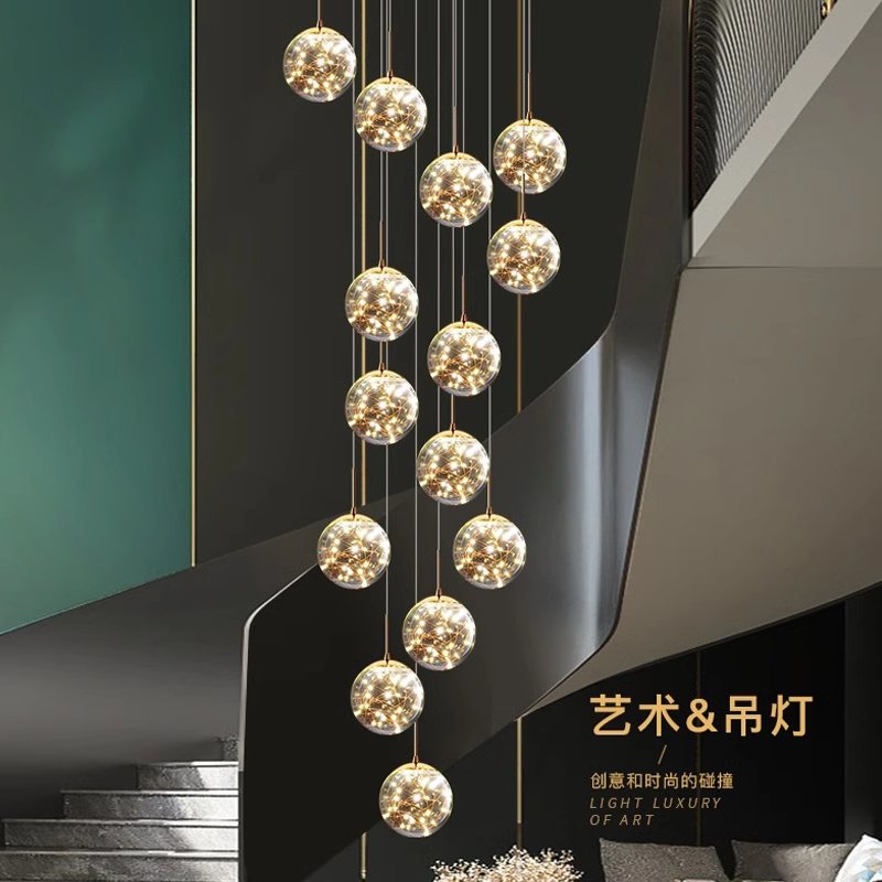 楼梯间吊灯长吊灯现代简约轻奢满天星loft复式别墅挑空客厅大吊灯